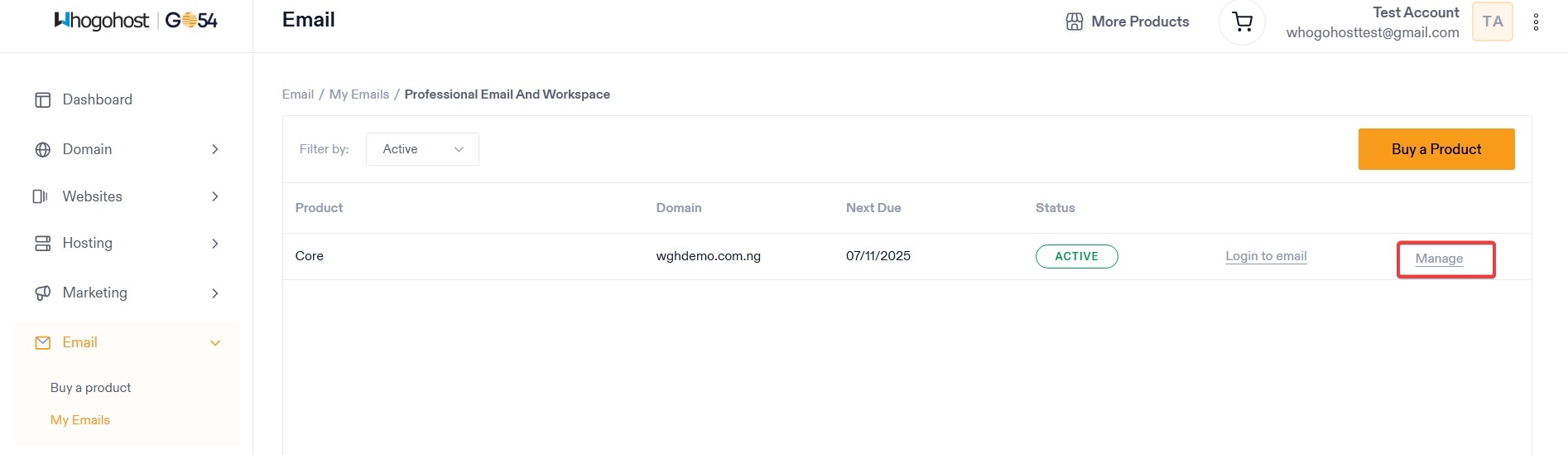 - Login to your Go54 client area, click on Email>>> My Emails on the left Tab.