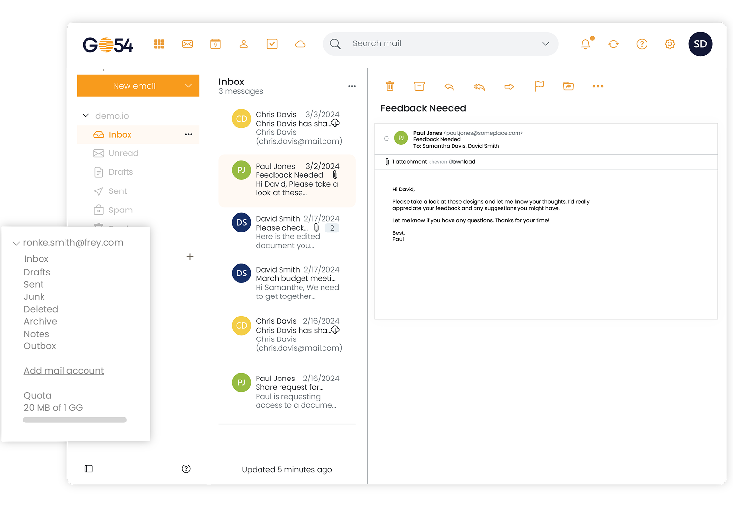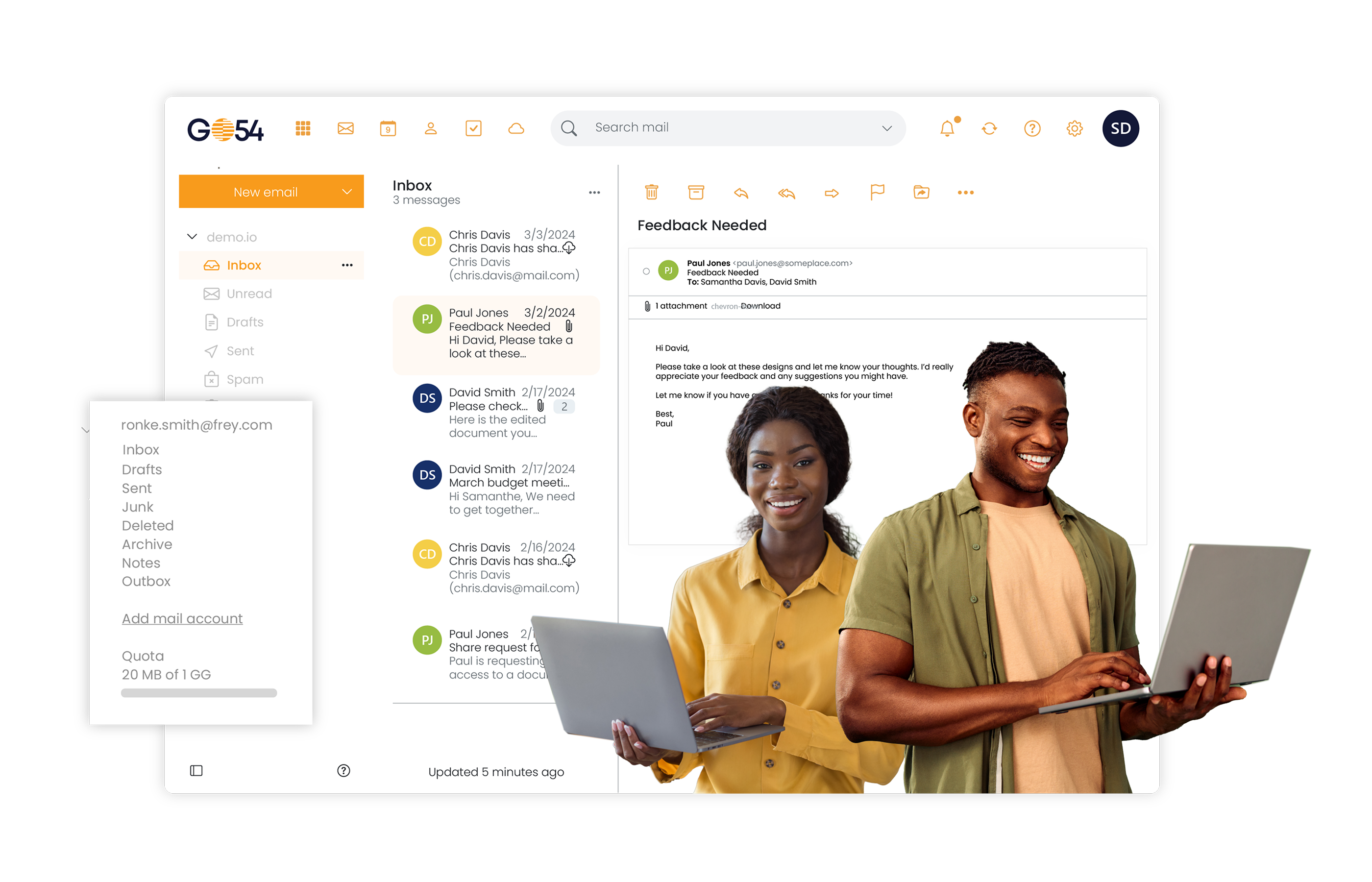 No worries — you don’t have to delete important emails to make space. You can easily purchase additional storage blocks whenever you’re close to your limit. Our plans come with 5GB per account by default, but we understand that some businesses may need more, especially if you're handling a lot of client communication or attachments. Just contact support, and we’ll help you expand your storage with no downtime.