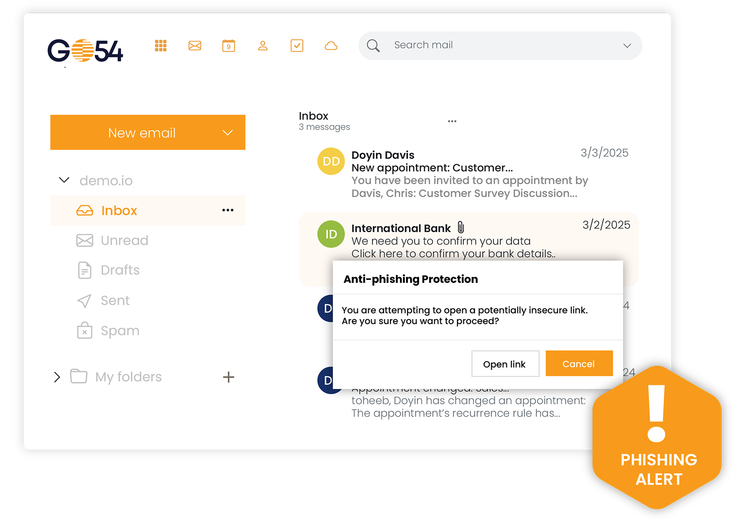 Defend against viruses, ransomware, and malware with powerful built-in antivirus. Harmful attachments and threats are stopped instantly, ensuring your inbox stays secure.